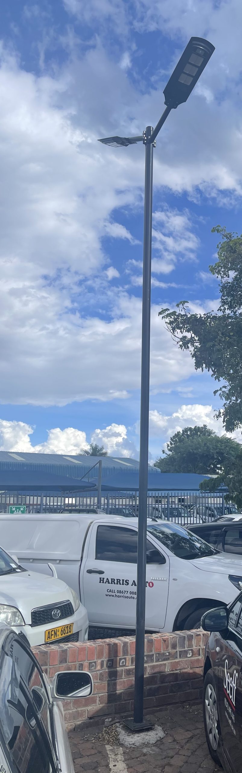 The hinged bolt-on base allows for easy installation and maintenance, making it convenient to install on concrete pads or reinforced surfaces without complicated equipment. Made from high-quality galvanized steel, the mast is corrosion-resistant and built to withstand Zimbabwe’s weather conditions.
